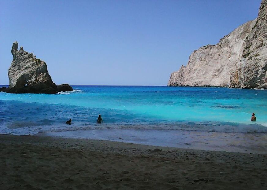 As is known to all, the island of Zakynthos is mainly famous for the legendary Wreck Beach, which attracts countless visitors from around the world. What may not be known to the most is that on the west side of the island there is a beach, created with equal beauty and majesty, a beach called Sfogio. Sfogio beach is almost twenty minutes away from Shipwreck beach and about fifteen minutes away of Porto Vromi. The access to Sfogio is only possible via sea by any kind of boat. It certainly is a dreamy beach with crystal clear blue waters and fine, white sand. The landscape is famous for its wild beauty, caused by the high wild cliffs that surround the clear blue sea. As soon as you set foot in the beach you will feel that you are at your private earthly paradise. A dive deep down the cool, clear waters will relax you and give you a boost. After swimming, you can enjoy sunbathing under the beneficial properties of the sun and the iodine. The velvety sand is suitable for peeling and perfect for stimulating your body and firming your skin. For those who seek for the coolness of the shade, the wild cliffs and rocks that surround the beach are the ideal solution. Except the rare sight of wild beauty and the benefit of cool shade, the wild rocks also offer a wonderful sight, since on the top of them you can see fish-shaped fossils, which are shapely in such way that even their scales can be distinguished.