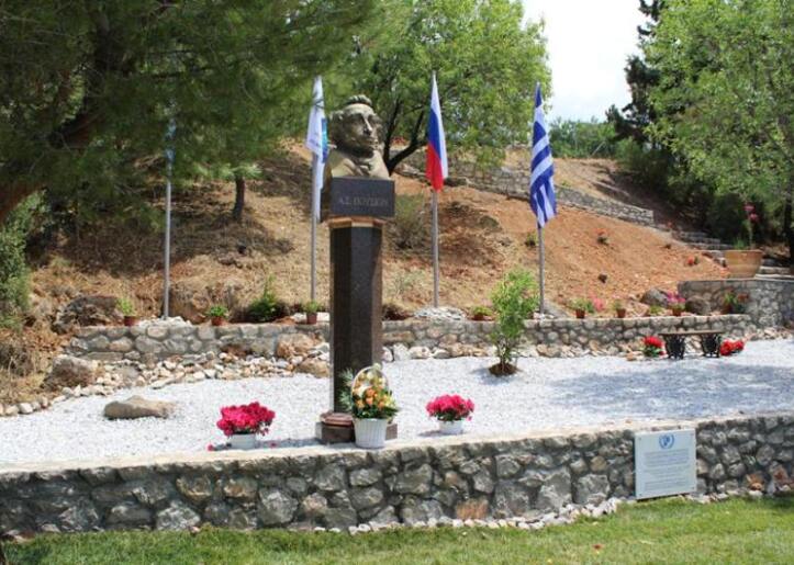 Monument of a Russian poet on the Parnassus slopes in Delphi