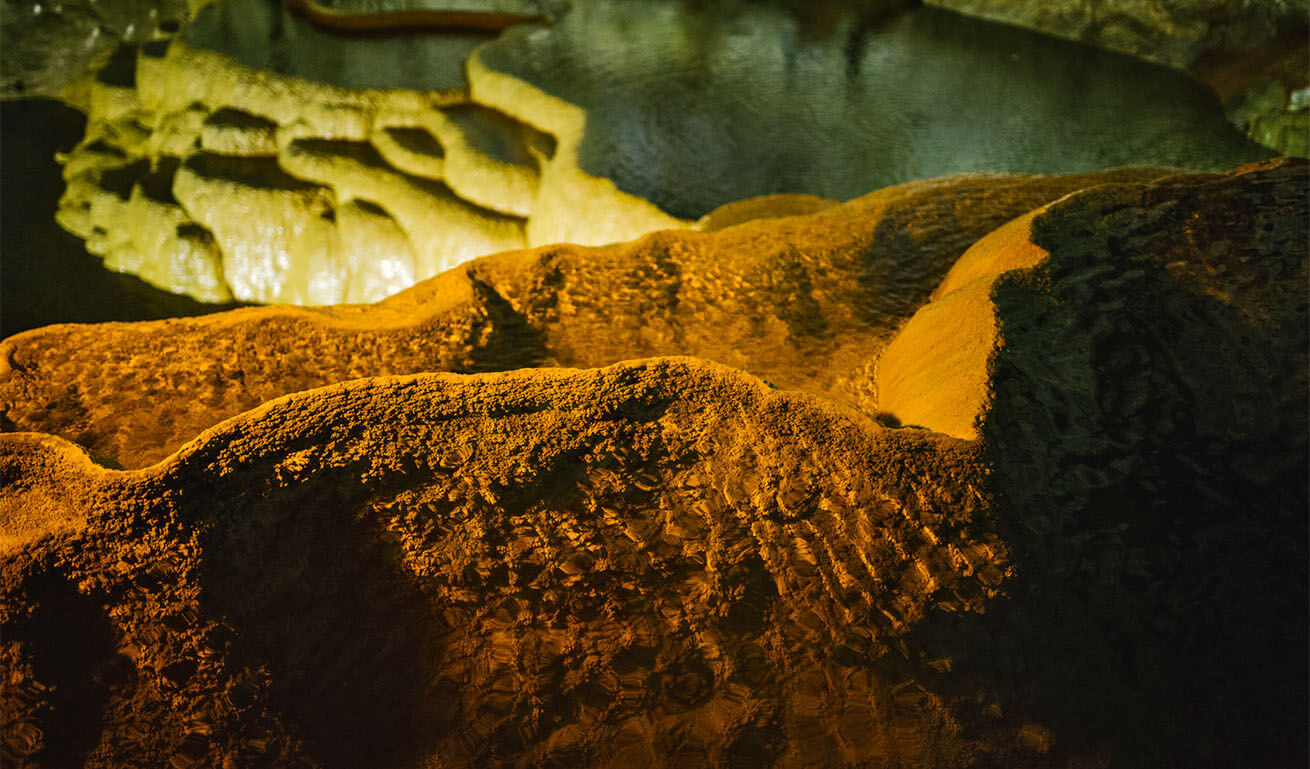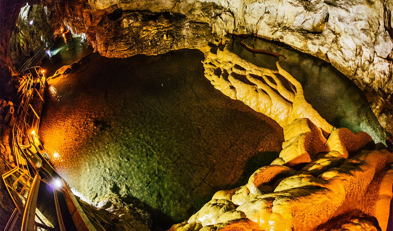 Περιηγηθείτε στο μαγευτικό «Σπήλαιο των Λιμνών» κοντά στο χωριό Καστριά στην Αχαΐα, μόλις 17 χλμ. μακριά από τα Καλάβρυτα. Ανακαλύψτε τις μυστηριώδεις στοές του και θαυμάστε τους παράξενους σταλακτιτικούς σχηματισμούς του, καθώς και τις αλλεπάλληλες κλιμακωτές λίμνες που εκτείνονται σε τρεις ολόκληρους ορόφους στο εσωτερικό του, ένα σπάνιο γεωλογικό φαινόμενο που προκαλεί δέος!Το σπήλαιο αποτελεί στην πραγματικότητα παλαιά κοίτη ποταμού με εξερευνημένο μήκος 1.980 μέτρα. Ο επισκέπτης μπαίνει στο σπήλαιο από τεχνητή σήραγγα που καταλήγει απευθείας στο δεύτερο όροφο, ενώ η διάβαση των λιμνών γίνεται από υπερυψωμένες τεχνητές γέφυρες. Στον κάτω όροφο του σπηλαίου βρέθηκαν μάλιστα απολιθωμένα οστά ανθρώπου και διάφορων ζώων, μεταξύ των οποίων και ιπποπόταμου. Το τμήμα αυτό προορίζεται να γίνει βιοσπηλαιολογικό εργαστήριο διεθνούς προβολής.