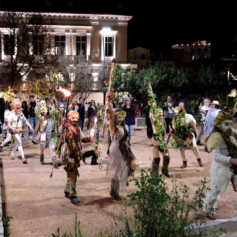 A special interactive cultural event, the result of in-depth research and a meticulous rendition that touches on experimental archaeology. An event that has been flooding the historic centre of Athens since 2014 and has conquered the world with its fun and vibrancy. It is a merry troupe of maenads, satyrs, sileni and revelers, led by the actor Dionysus, who walks and dances through the streets of Plaka. The procession is accompanied by bacchanalian music played on bagpipes, pipes, flutes and percussion instruments. Comic dances, songs, short Aristophanic excerpts, and satirical events are presented to the public. Thus, with dances, and songs the procession mingles with the public with satirical propriety, offering joy but also an essential authentic touch of Greek culture.