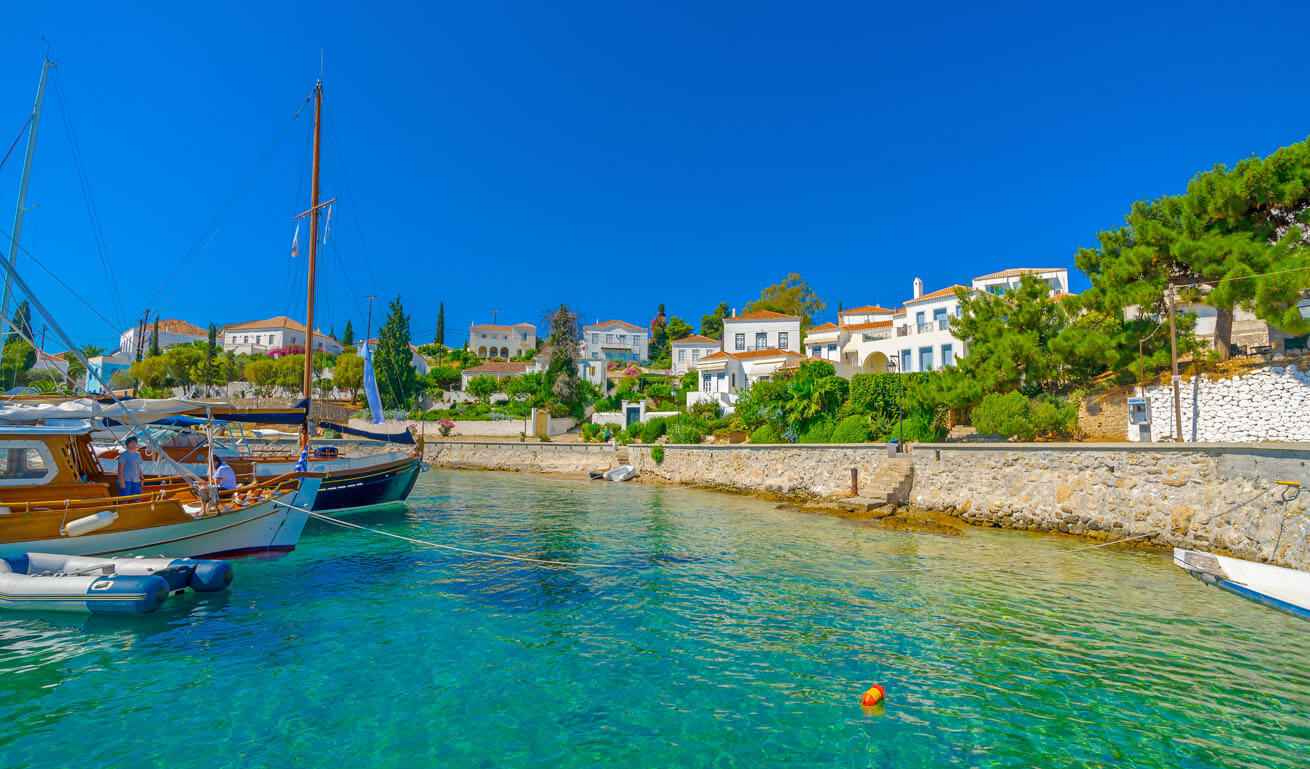 Travel by car to Kosta in Peloponnese and to get a boat from there to Spetses (the boat trip lasts only 15 minutes).