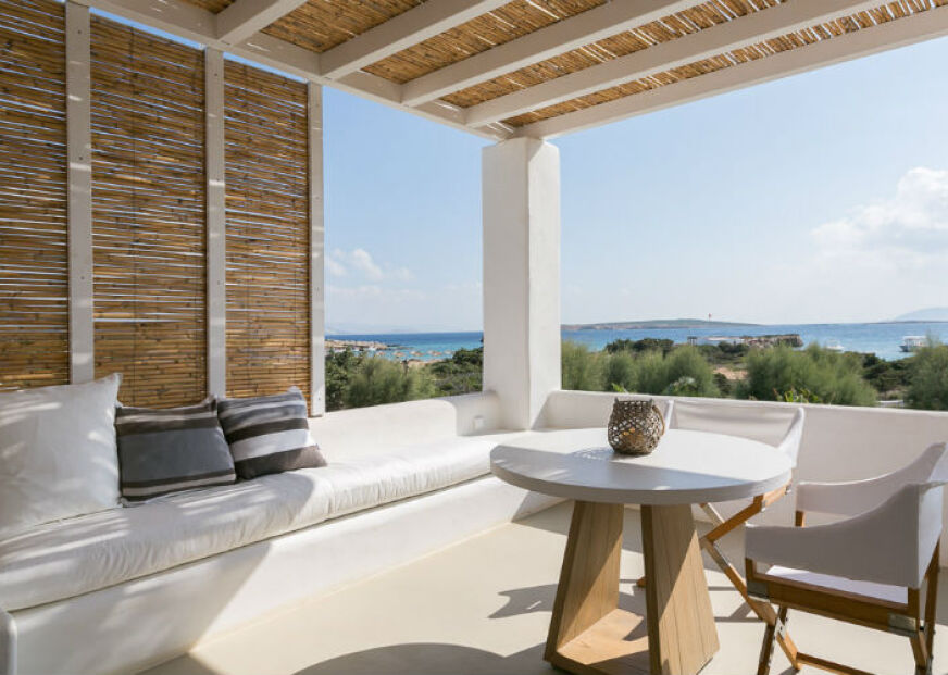 Naxos. It is located 2 km. from the Hora of Naxos and 500 m. from Agios Prokopios, the island’s most popular beach. Its spaces respect the Cycladic nature and its raw and untamed character. It consists of five villas and four suites, which blend traditional elements, modern design, and high-quality amenities. Elegant minimalism prevails both in the restaurant and in the hammam and the sauna, while the resort also provides services such as the organization of cruises and the charter of a helicopter or private jet.