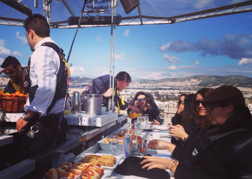 Dinner In the Sky, a project that is famous around the world, currently makes a stop in Athens. The special platform that has been set up in the extraordinary area of Technopolis at Gazi, “takes off” three times a day and goes up 50 m. from the ground; two times for a five-course dinner and the last one for cocktails, always affording views from the Acropolis and Lycabettus Hill to Salamina and Aegina (