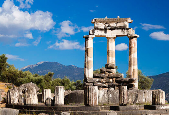 Στη σκιά του όρους Παρνασσού, πάνω από την βόρεια ακτή του Κορινθιακού Κόλπου, στην κοιλάδα της Φωκίδας, το μαντείο των Δελφών (χρηστήριον Δελφών), καταγράφει ιστορίες μαντικής για την πορεία των μελλοντικών γεγονότων ατόμων και πόλεων για περισσότερο από 1000 χρόνια. Αν και ιερός χώρος ήδη από το 1400 π.Χ., κατά την ομηρική εποχή (τέλη του 8ου αιώνα π.Χ.) το μαντείο των Δελφών αναφέρεται ως φημισμένο ιερό για τους χρησμούς του με πολυάριθμους επισκέπτες. Ωστόσο, η αποκορύφωση της δημοφιλίας του ήταν κυρίως από τον 6ο έως τον 4ο αιώνα π.Χ. Μετέπειτα έφθινε σταδιακά μέχρι που το μαντείο σίγησε εντελώς από τον αυτοκράτορα Θεοδόσιο το 392 μ.Χ.Αρχικά, ο χώρος του μαντείου των Δελφών ήταν αφιερωμένος στη Μητέρα Γη (Γαία), στη συνέχεια στην κόρη της, Θέμιδα, που εκπροσωπούσε το θείο νόμο και συχνά θεωρείτο σύζυγος του Δία. Τέλος, η προστασία του μαντείου πέρασε στο Φοίβο Απόλλωνα, όταν εκείνος σκότωσε τον Πύθωνα, το φύλακα του ιερού χώρου, και διόρισε μία ιέρεια, την Πυθία, η οποία ενεργούσε ως φερέφωνό του. Έκτοτε, η Πυθία επιλεγόταν για το ήθος και όχι για την αριστοκρατική καταγωγή της από την τοπική κοινότητα των Δελφών. Υπηρετούσε τον Απόλλωνα δια βίου, αφιερώνοντας τη ζωή της σ’ αυτόν. Την εποχή της μεγάλης δημοφιλίας του, το μαντείο υπηρετούσαν έως και τρεις Πυθίες, ενώ η κοινότητα των Δελφών διέθετε οίκημα πλησίον του ιερού για τη φιλοξενία της Πυθίας έως και τον 1ο αιώνα μ.Χ.