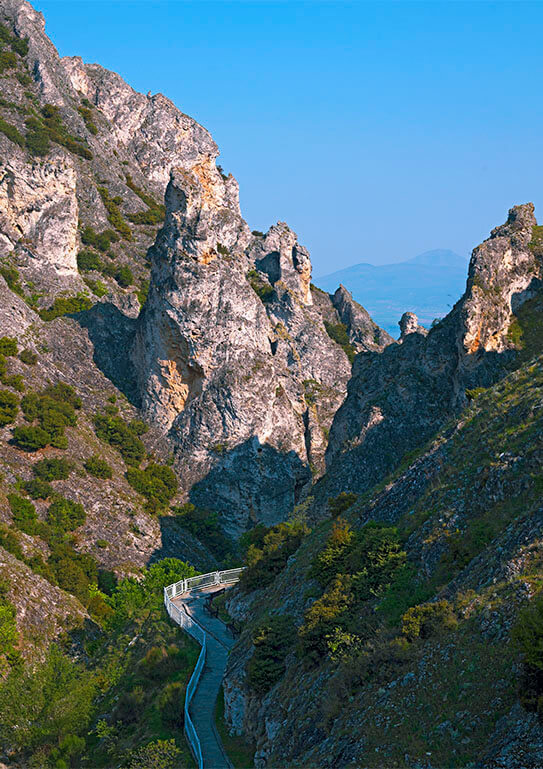 Mount Vourinos or Bourinos, which is a continuation of Askio to the south, has been included in the Natura 2000 network, due to the great variety of its flora, which includes more than 500 species, some endemic and some very rare. It is suitable for hiking and mountaineering. On the opposite side of Aliakmonas River, on the slopes of Mt. Kamvounia, the Elati fir forest is also an attraction for nature lovers. The Servia gorge has a walking path that makes it traversable even by children. Its impressive rocks, small waterfalls and geological formations are a sight to behold.