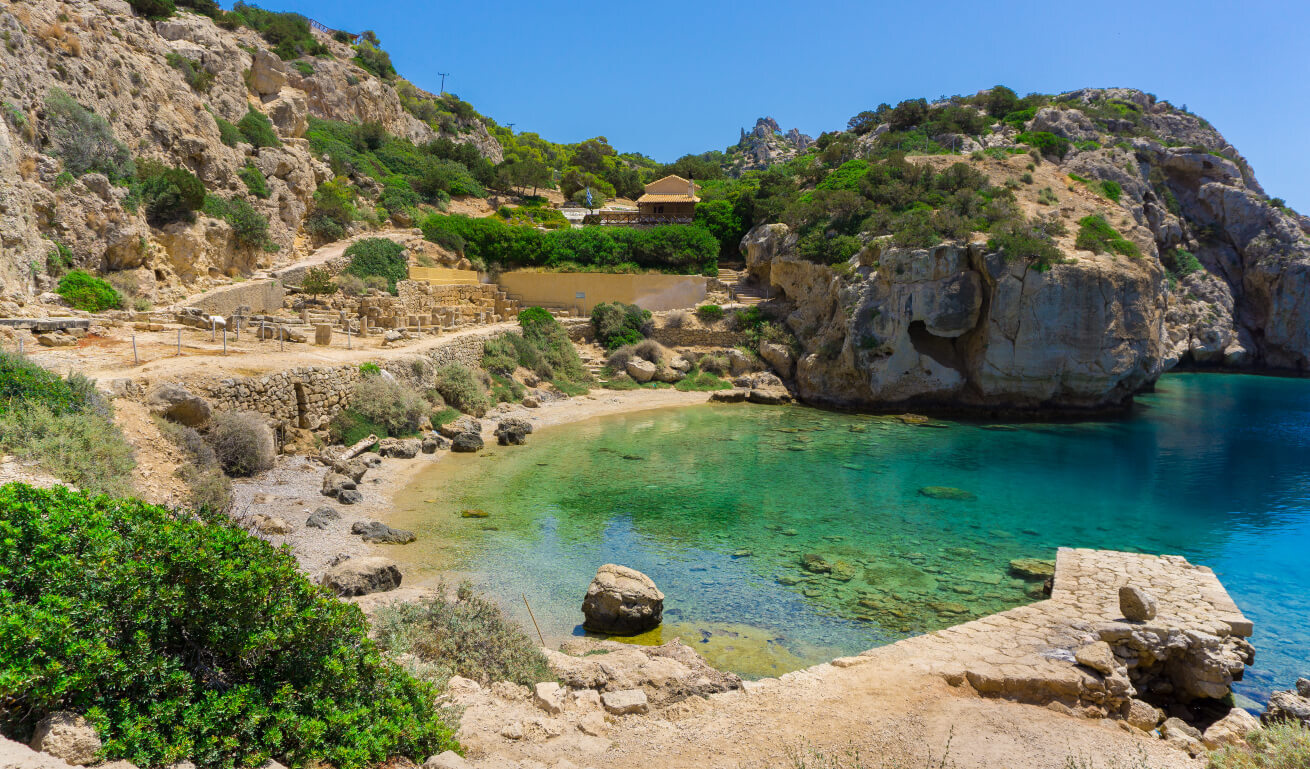 Built next to the picturesque bay and harbour you’ll encounter the Temple of Hera (first level of the site), making it ideal for a simultaneous refreshing dive in the sea found next to the site. The temple replaced an earlier small apsidal temple dating back to the Geometric period (late 9th century BC - early 8th century BC). The altar was a long rectangular structure, which was originally decorated with triglyphs and metopes on all four sides, while the remains of at least seven steps were part of a staircase. A two-storey stoa built in an L-shape, dating from the 4th century B.C., extends to the east of the Altar.