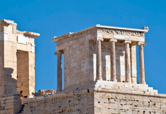 There are stories about the ship of King Menelaus who stopped briefly at Sounio on his way back from Troy; or about the unfortunate King Aegeus who drowned himself on that spot and the Aegean Sea got named after him; or about the people who built a temple using local marble to honour the god of the sea and safeguard the profits from the neighbouring Lavrio mines.Decorative elements