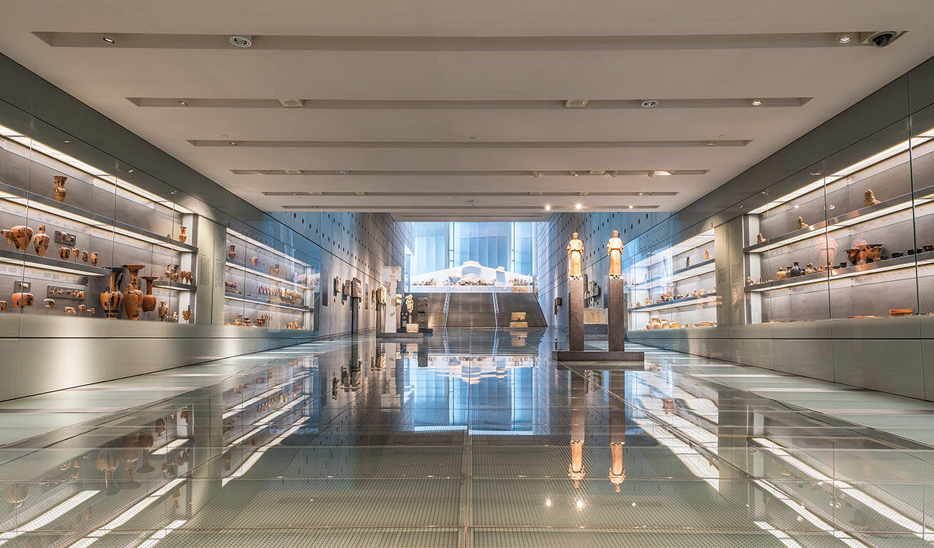 The Museum hosts its collections across three levels, as well as in the archaeological excavation that lies at its foundations.Located on the ground floor, the “Gallery of the Slopes of the Acropolis” houses finds from the sanctuaries that were established on the slopes of the Acropolis, as well as objects that Athenians used in everyday life from all historic periods.
