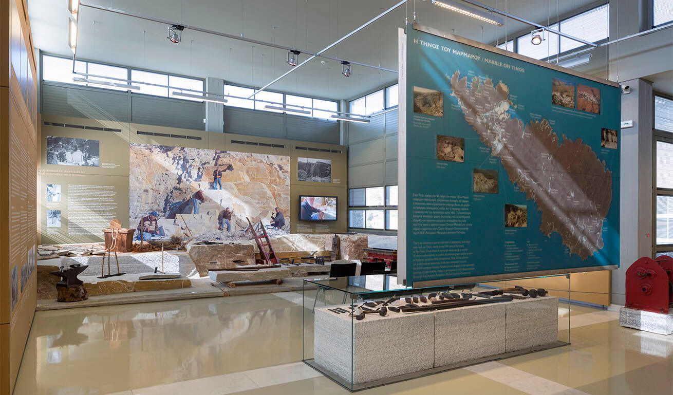 The Museum of Marble Crafts, in Pirgos village, on Tinos is a unique example presenting the technology of marble, a material that holds a particular place in the architecture and art of Greece and Tinos island, from antiquity through to the present.Τhe permanent exhibition, which describes the intricate meshing of tools and techniques used in working marble in a detailed and live manner, puts an emphasis on the pre- and proto- industrial Tinos, the most important centre of marble crafts in Modern Greece. In parallel, it highlights the social and economic context that the local workshops evolved in.