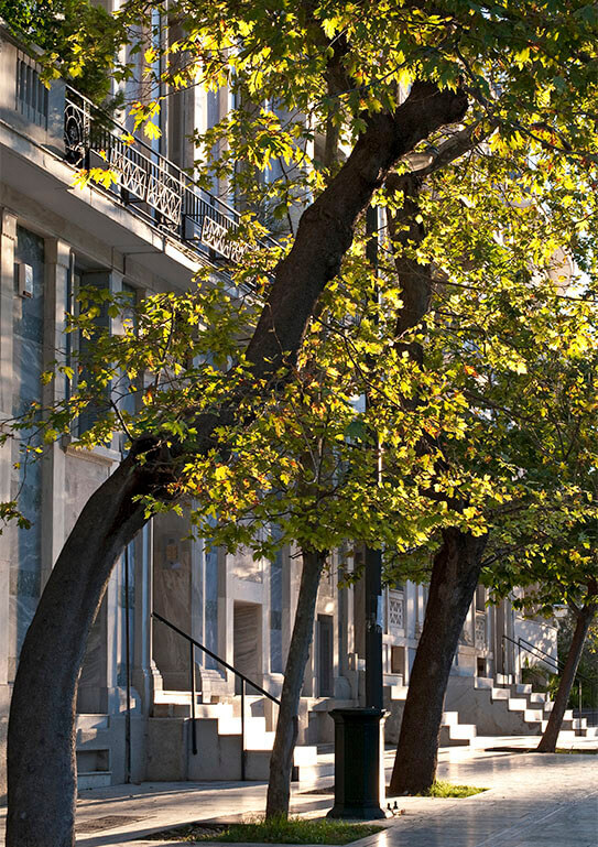 Syntagma and Omonia are the main central squares of the town; they are linked by Stadiou Street and Panepistimiou Avenue, along which some of the town’s most beautiful Neoclassical buildings have been erected. Dominating Syntagma Square is the Greek Parliament building and in front of it the Monument of the Unknown Soldier, guarded by the Evzones in traditional costume. From this square starts the beautiful National Gardens (40 acres), south of which stands the impressive Zappeion Mansion (1874-1888). From there you can hed towards the Presidential Mansion (1897) and thence to the Panathenaikon (Kallimarmaro) Stadium, where the first Olympic Games in modern history were held (1896). From there, crossing the Mets neighbourhood, the road leads you to the First Cemetery, the oldest one in Athens, basically an outdoor sculpture display with a wealth of wonderful monumental tombstones by some of the most important sculptors of the 19th and 20th centuries.