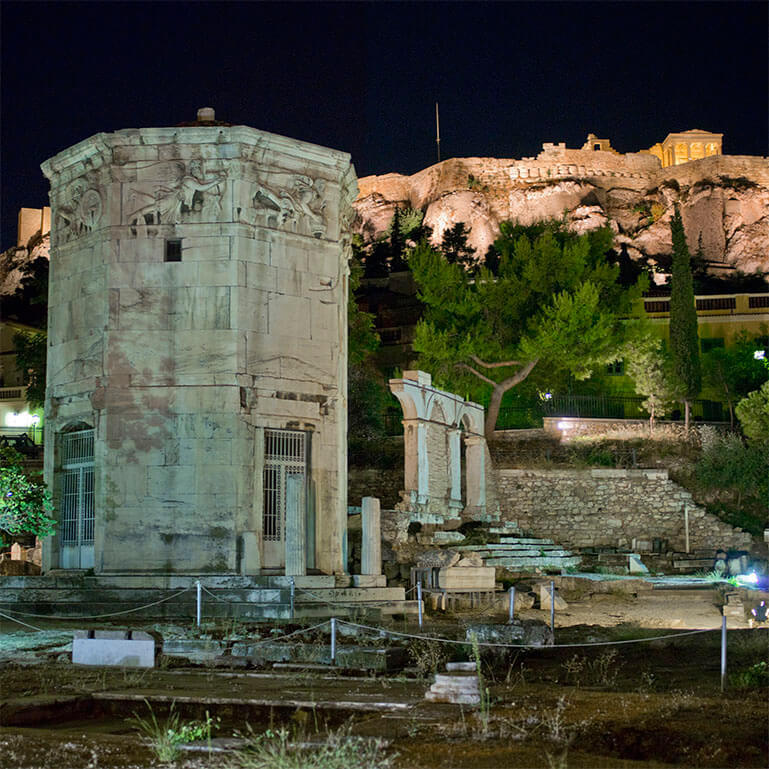 The “core” of the historic centre of Athens is the Plaka neighbourhood (at the eastern side of the Acropolis), which has been inhabited without interruption since antiquity. When you walk through the narrow labyrinthine streets lined with houses and mansions from the time of the Turkish occupation and the Neoclassical period (19th c.), you will have the impression of travelling with a “time machine”. You will encounter ancient monuments, such as the Lysikrates Monument, done by a wealthy donor of theatrical performances, the Roman Agora with the famed “Tower of the Winds” (1st c. B.C.) and Hadrian’s Library (132 A.D.), scores of bigger and smaller churches, true masterpieces of Byzantine art and architecture, as well as remnants of the Ottoman period (Fetihie Mosque, Tzistaraki Mosque, the Turkish Bath near the Tower of the Winds, the Muslim Seminary, et al.). There are also some interesting museums (Folk Art, Greek Children’s Art, Popular Musical Instruments, Frysira Art Gallery, etc.), lots of picturesque tavernas, cafés, bars, as well as shops selling souvenirs and traditional Greek products.