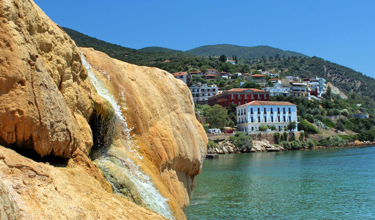 A famous resort, which accommodates around 40.000 tourists during summer. The area is popular for its thermal spas which Aristotle and Plutarch used to visit.